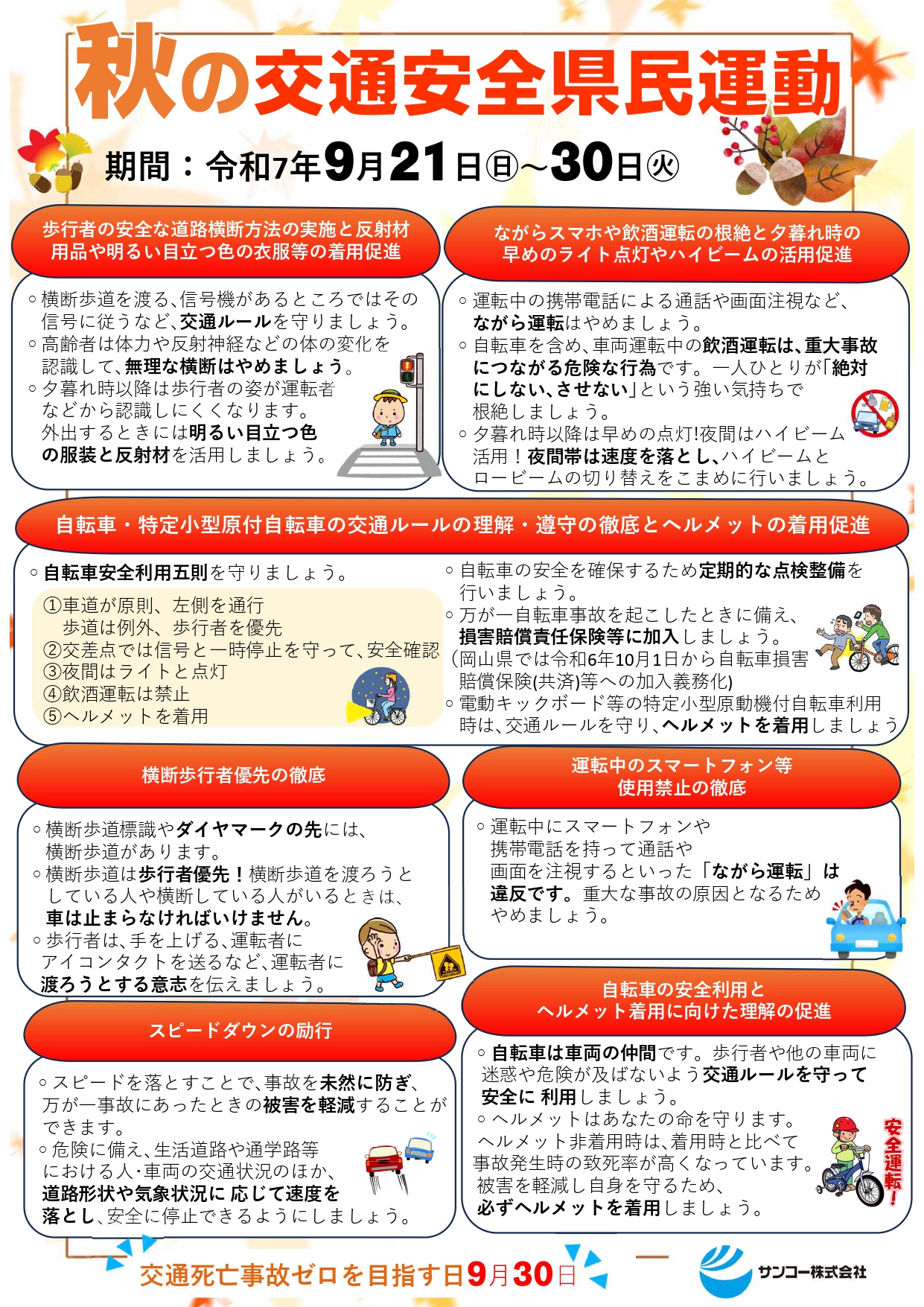 これに伴い、岡山県でも『秋の交通安全県民運動』を行っています!